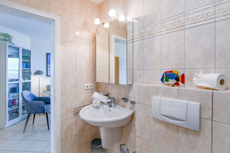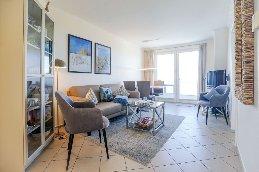 Die modern eingerichtete 2-Raum-Wohnung bietet auf ca. 45 m² Platz für 2 Personen und befindet sich nur wenige Schritte vom Strand und der Promenade entfernt.