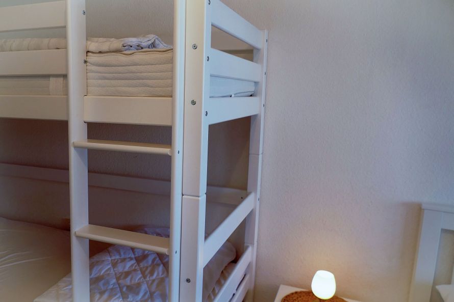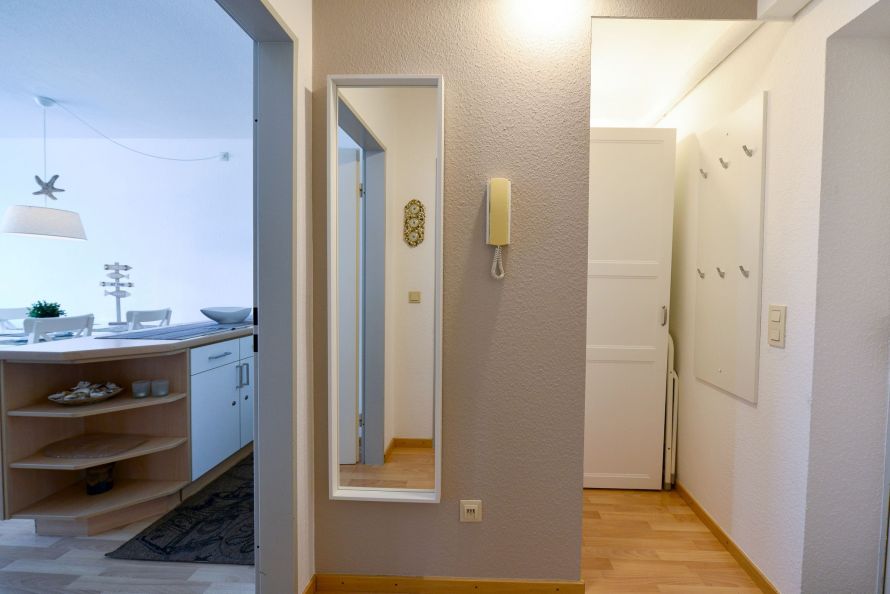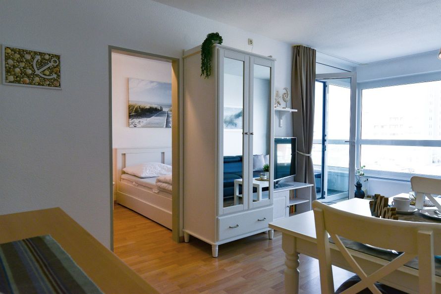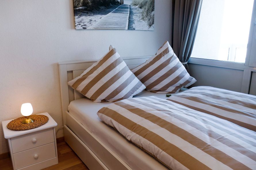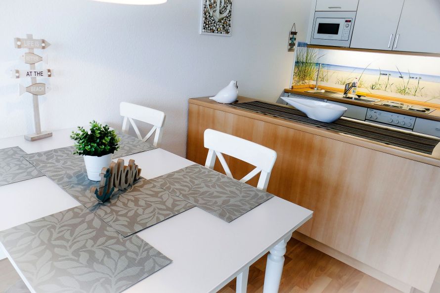 Die Wohnung ist mit allem ausgestattet, was Sie für einen sorgenfreien Aufenthalt benötigen. Die vollausgestattete Küchenzeile ermöglicht es Ihnen, Ihre Mahlzeiten selbst zuzubereiten und in der gemütlichen Atmosphäre der Wohnung zu genießen. Das Bad mit bodentiefer Dusche sorgt für eine angenehme Erfrischung nach einem langen Strandtag. In beiden Zimmern befinden sich Flatscreen TV, die zu einem entspannten Abend auf der Couch oder im Bett einladen.