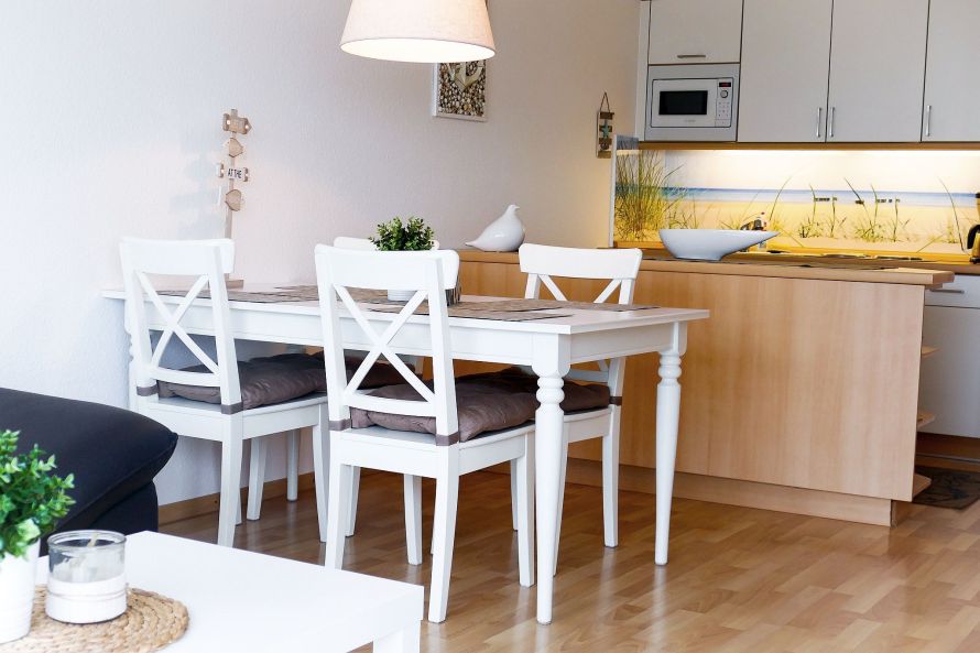 Die Wohnung ist geschmackvoll und harmonisch eingerichtet.Mobiliar und Deko sind farblich aufeinander abgestimmt. Das Highlight der eigene Strandkorb wahlweise am Hundestrand oder am "normalen" Strand.