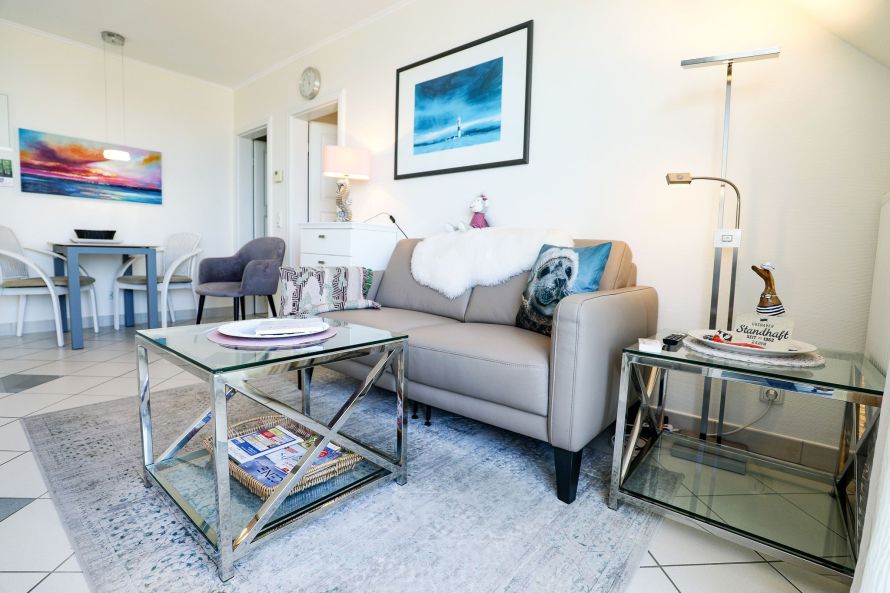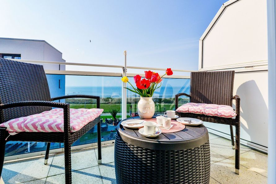 Vom Westbalkon genießen Sie einen herrlichen Blick auf das Meer und die Insel Neuwerk sowie traumhafte Sonnenuntergänge in entspannter Atmosphäre. Die modern eingerichtete Ferienwohnung ist ideal für bis zu zwei Personen und überzeugt durch eine helle, freundliche Ausstattung.